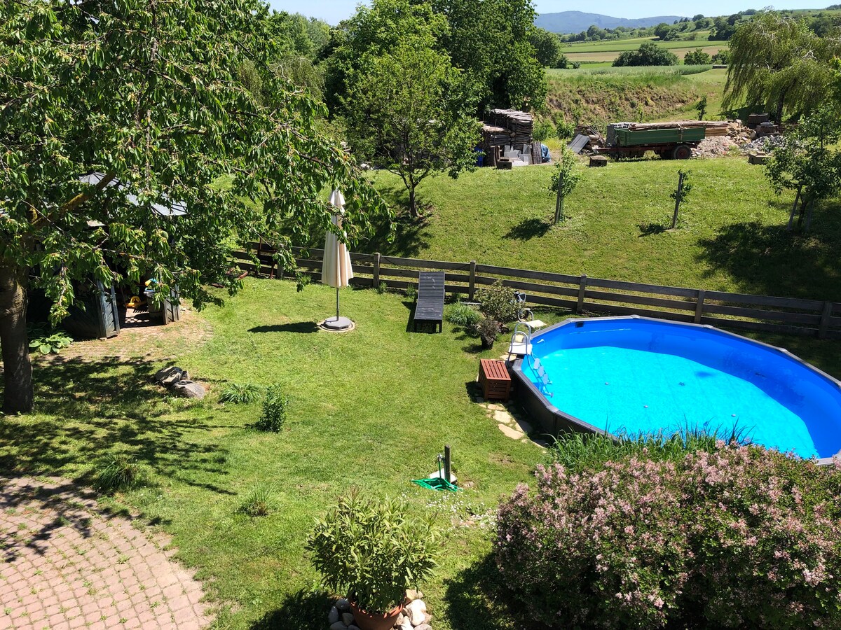 SONNENHAUS Siz və yoldaşlarınız dincəlmək və/və ya işləmək üçün sükunət oazisini sevirsiniz? Bu, sizin üçün ən yaxşı yerdir: Gölməçədə rahat taxta kottec, gözəl sauna, təxminən 1000m2 bağ, açıq havada mətbəx və müxtəlif qrillər. Hamam xalatı geyinib noutbukla işləyirsiniz? Gəlin başlayaq! İstədiyiniz tarix bron edilə bilmirsə, mənə yazın! Qiymətə yekun təmizlik, gecə vergisi, sauna və manqal özəllikləri daxildir. Qonaqların sayının düzgün olduğundan əmin olun.