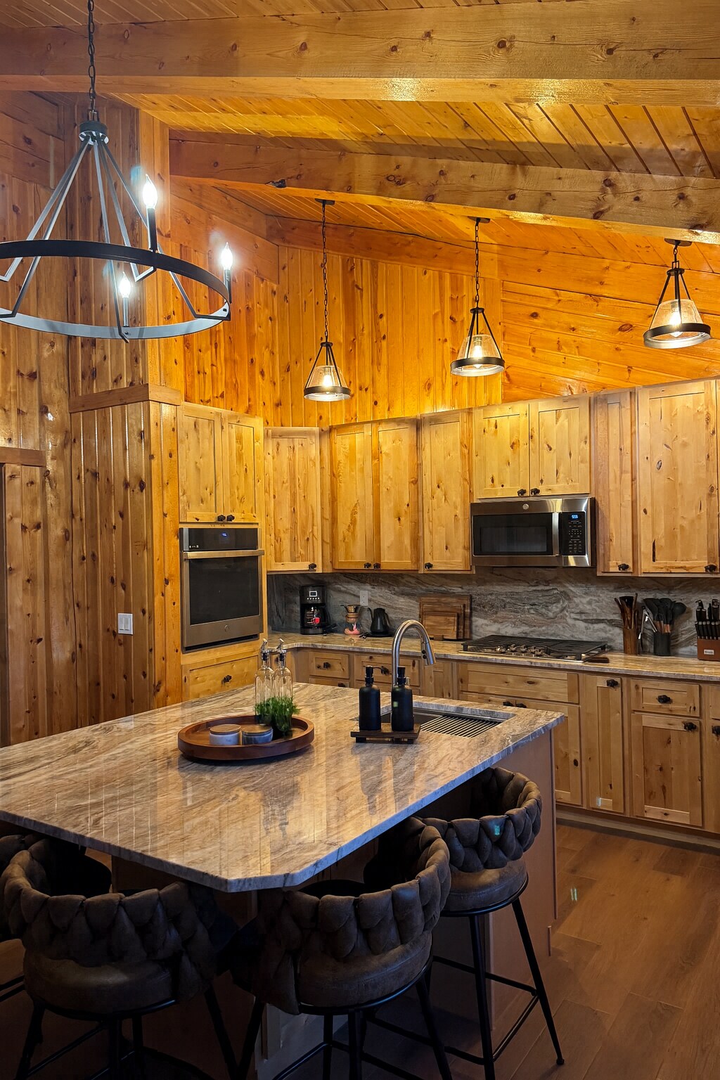 This newly remodeled second story cabin on Pine Creek is a sanctuary. The cabin has a nature inspired interior with a slate tile entry, wood floors and tongue and groove ceilings that give it a mountain modern feel. Enjoy watching abundant wildlife from every window and listening to the gentle stream while sitting in the private garden. This cabin is located close to downtown Pinedale and next door to hosts, yet it feels secluded. 78 scenic miles to downtown Jackson, WY.