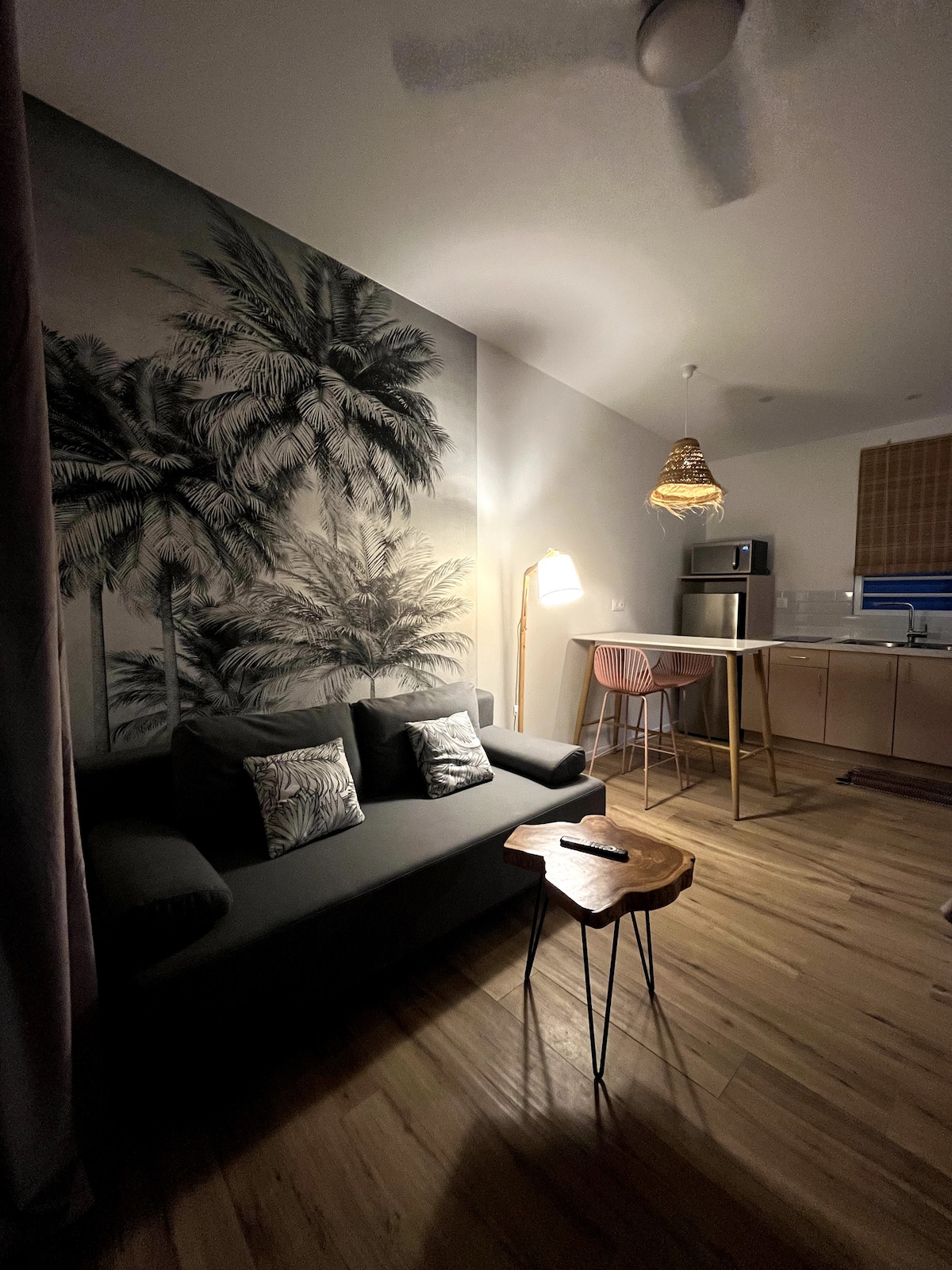 Bienvenue dans notre bungalow tout neuf, au style moderne et à la décoration soignée, pensé pour vous offrir le confort d’un hôtel… avec le charme en plus ! Vous y trouverez un salon lumineux avec cuisine ouverte, une chambre séparée et climatisée pour des nuits au frais, ainsi qu’une salle de bain élégante et fonctionnelle. L’endroit idéal pour un séjour cosy et relaxant ! Et bien entendu une superbe vue sur le lagon ...Simplifiez-vous la vie dans ce logement paisible et central.
