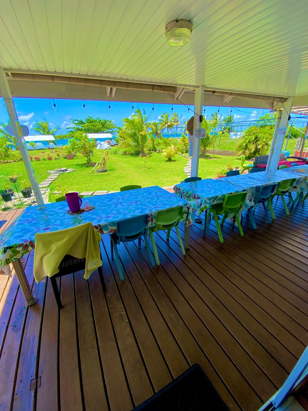 İcarəyə gənc meyvə ağacları və palma ağacları ilə əhatə olunmuş, çiçəkli bağda 3 nəfərlik şəxsi çadırınızın quraşdırılmasına həsr olunmuş qazon sahəsi, yerləşməyinizi qarşılayacaq 800 m2-lik xəyal parametri daxildir. Sahə dəniz kənarında olduğundan günəşin doğması və batması, isletlər və Bora Bora adasının heyranedici mənzərəsi ilə laqun və səmanın rənglərinə heyran ola bilərsiniz. Kayaklar mövcuddur. Mauruuru maitai