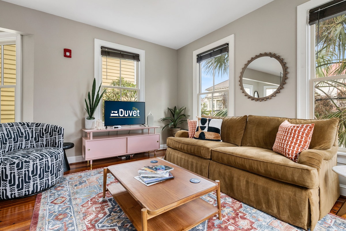 Bu zərif tarixi Çarlston iqamətgahında keçmişə qayıdın (OP2025-06356). 12 fut hündürlüyündə tavanlar, cilalanmış taxta döşəmələr və böyük pəncərələr zərif bir istirahət üçün münasib atmosfer yaradır. Əsas yataq otağı və pərdəli günəş otağının hər birində uyğunlaşan yataq rejimi üçün 183x213 sm ölçülü çarpayılar var. Sakit, piyada gəzinti üçün uyğun olan tarixi şəhər mərkəzində yerləşir. Cütlüklər və ya zövqlü qızlar üçün həftəsonu üçün mükəmməldir. Ayrıca giriş, düşünülmüş şəkildə dizayn edilmiş 93 kvadratmetrlik daxili məkan. Elektrik avtomobil şarj cihazı olan eksklüziv küçə parkinqi.
