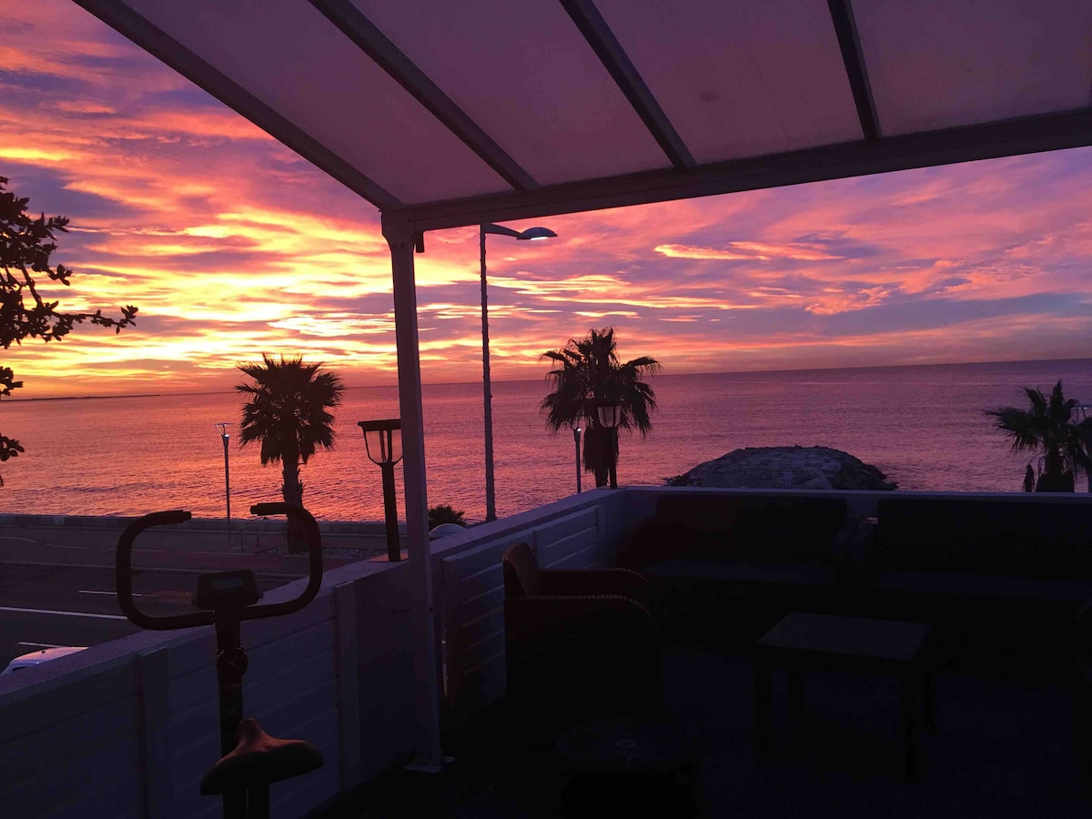 Bu müstəsna mənzil Promenade des Anglais-dəki yaşayış binasının 4-cü mərtəbəsində, yəni çimərliyin bir neçə addımlığında yerləşir. Mənzildə açıq mətbəxi olan böyük qonaq/yemək otağı, eləcə də 2 yataq otağı, 2 hamam otağı və böyük terras var. Mebellər dəblidir. Geniş balkon dənizə baxır və bütün gün günəş altında qalır (demək olar ki). Şəhərin mərkəzi ayaqla 15 dəqiqə və ya tramvayla 5 dəqiqədir.
