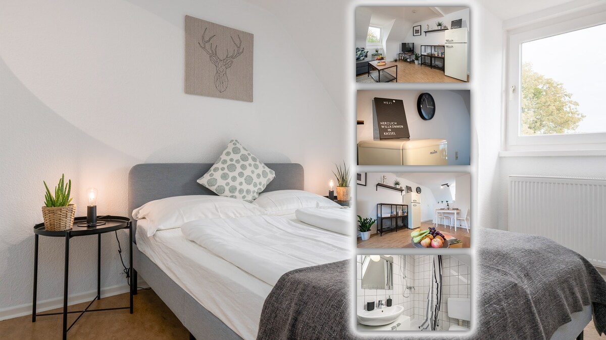 Şəhərin mərkəzində müasir, mehriban və parlaq 65m ² loft. Loft rahat divan, televizor sahəsi, açıq mətbəxi olan böyük otaq və rahat ayrıca yataq sahəsindən ibarət geniş qonaq otağına bölünür. Digər seçilən cəhət isə lüks hamam otağıdır. Şəhər mərkəzi 1 dəqiqədən az bir məsafədə yerləşir. Mərkəzi mövqeyə baxmayaraq, Kassel üzərində panoramik mənzərələr də daxil olmaqla çox sakit mövqedir. Qatar/avtobus əlaqələri birbaşa qapıdan kənarda