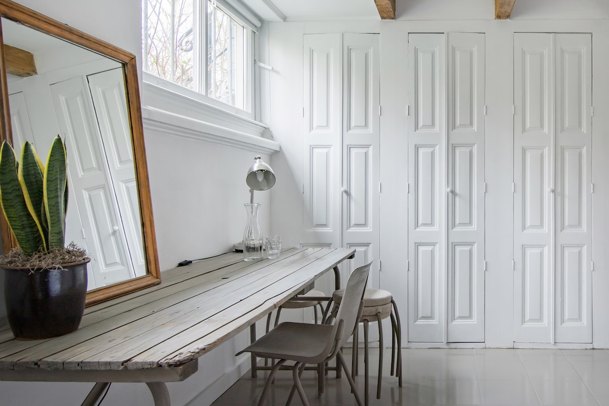 Şəhərin mərkəzində yerləşən bu studiya mənzili sakit tənhalıq və mərkəzi rahatlığın nadir qarışığını təmin edir. Amsterdam kimi hiss edilən tarixi bir evdə yaxşı düşünülmüş studiya məkanının komfortları ilə yanaşı, Saunası olan şəxsi Bağ Terrasınız olacaq. İçəridə və çöldə zövq almaq üçün əla dam mənzərələri, təmtəraqlı çarpayı, balaca mətbəx və istirahət məkanları var. Bu, şəhərin ən görməli yerlərinə asan gəzintidir və qapının astanasında çoxlu restoranlar var.