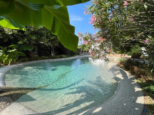 Ekzotik bir bağda yerləşən bu Arobo-Andalusian villasında xüsusi çimərlik var... Dənizin əsl ilk xətti! Mərkəzi verandanın ətrafında dizaynı sizə hər otaqdan dənizə açılan valehedici mənzərəni təklif edir. Funksional və yaşamaq üçün asan villa, terrasa və xüsusi çimərliyə baxan qonaq otağı! İtalyan duşu olan 20m2-lik usta süitasından, birinci mərtəbədə isə digər iki yataq otağından ibarətdir. Üzmək üçün qapını basmaq kifayətdir...