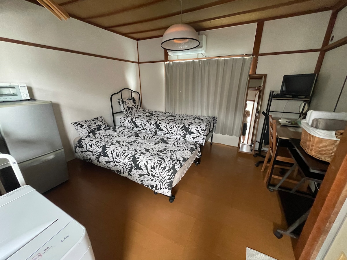 Metro və avtobus dayanacağından cəmi 1 dəqiqəlik məsafədə, qadın üçün təmiz və rahat bir otaqlı mənzil. Yaxınlıqda 24 saat açıq olan mağazalar var. Otaqda yemək bişirmək üçün ləvazimatlar, plov bişirən və rahat yuxu üçün yarı-iki nəfərlik Sealy çarpayı var. Binada 3 paltaryuyan və quruducu maşın da var. Maksimum qonaqlama müddəti ildə 180 gündür, buna görə də erkən bron edin. Bu, hər aprel ayında sıfırlanır. Keyfiyyətin qorunması üçün yenilənmiş qiymətləndirmə: 2026-cı ildə gecəlik 5500 yuan-dan başlayaraq Yaponiyada inflyasiya səbəbindən mümkün kiçik artımlarla.