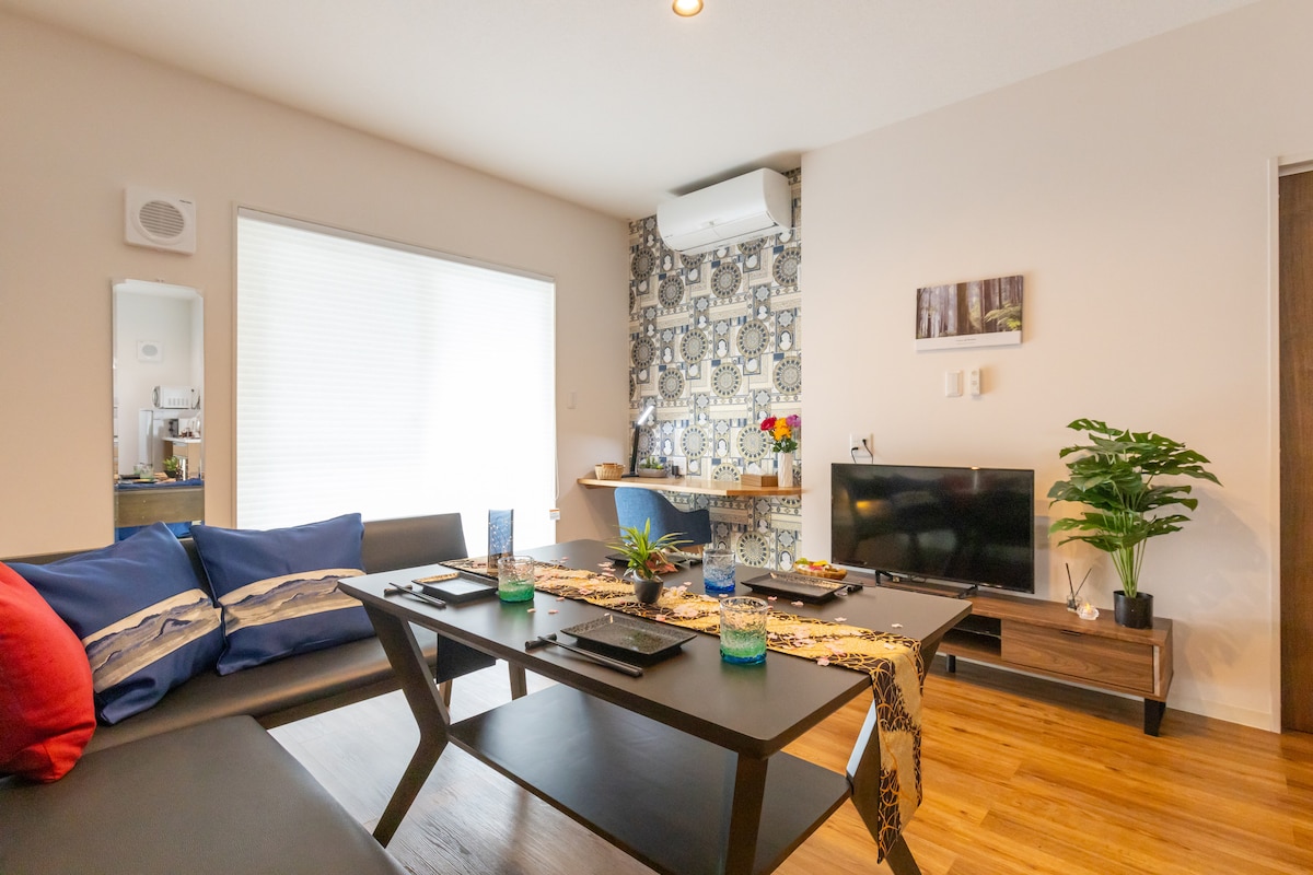 ✴︎ Attention✴︎ A demolition work started in the neighborhood as of late Feb 2026 Noise will be occurred. === This 1LDK apartment is located one block behind Route 58. Ideal for family or small group. 400m from Kencho-mae (Prefectural office) station (6 stations from airport). Basically 2 single futon sets(max 3sets are available). If you wish to share your bedding with your child, she/he is free of charge (if you have 2 such children, please count them as 1 adult and order 1 more bedding).