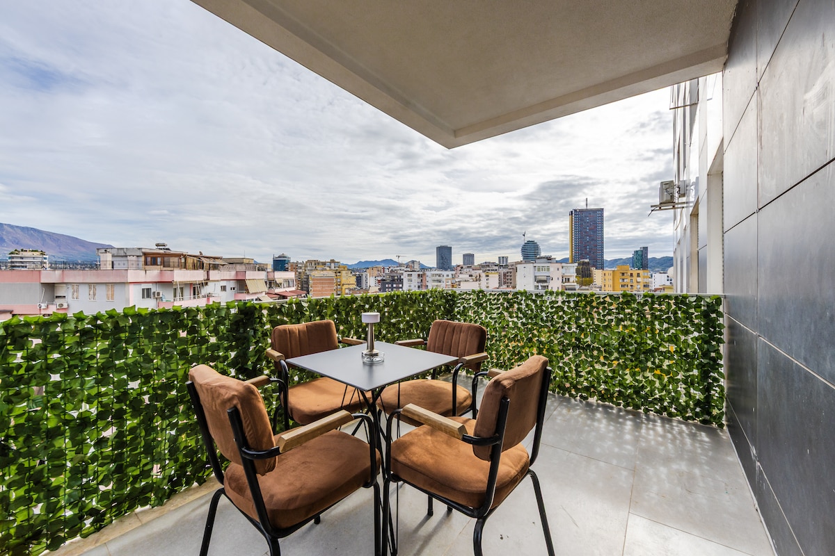 Tirananın mərkəzində əla mənzil, əla mənzərələri, təbii işıqlandırması və üstü geniş terras ilə şəhərə baxa bilərsiniz (gecə vaxtı səma sehrli olur). Taxta istilik toxunuşu olan müasir dizayn və geniş otaqlar. Mərkəzdən cəmi 4 dəqiqəlik məsafədə yerləşir və əlaqəsi var tirananın bütün əsas küçələrində bu tətbiqetməni yaxşı seçim edir istəyən qonaqlar üçün şəhərin mədəni təcrübəsini təcrübədən keçirin görməli yerlər, muzeylər, parklar, restoranlar və Tiranas gecə həyatı.
