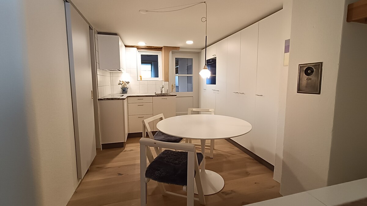 Bu qonaqlama yeri sizə Reyn yaxınlığındakı köhnə Diessenhofer şəhərində unikal mühitdə istirahət etməyi təklif edir. Cakuzili funksiyası olan vanna ilə təchiz edilmiş, öz-özünə yemək bişirmək üçün tam təchiz olunmuş mətbəx, eləcə də paltaryuyan maşın/tamburla təchiz edilmiş yeni təmir edilmiş mənzildə 700 yaşdan kiçik palıd tirləri yatın. İkinəfərlik çarpayı (180x200sm), açılan divan (160x200sm) -> 3-cü şəxs üçün +40Fr.! Zirzəmidə velosiped parkinq yeri, ərazidə parkinq yerləri. Gəzinti məsafəsində qatar stansiyası, müxtəlif restoranlar və Reyn.