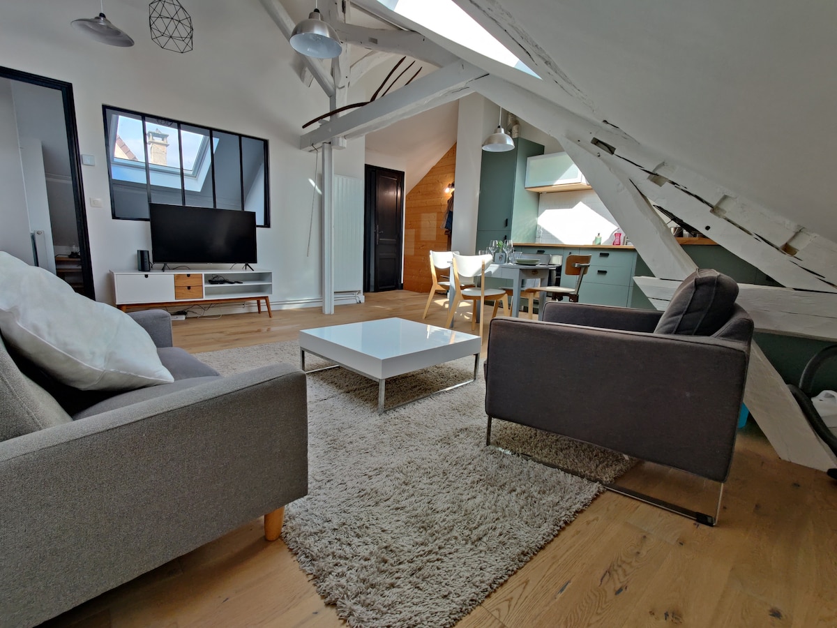 Ce logement familial en centre ville, d'un peu plus de 70m2, est proche de tous les sites et commodités. Très lumineux et paisible, il a été entièrement rénové et équipé de mobilier neuf, très confortable, attention aux détails; Au rez-de-chaussée, vous trouverez un grand toilette avec lave-mains, une cuisine ouverte équipée et un salon / salle à manger. A l'étage, vous trouverez ensuite une grande salle de bain avec baignoire et toilette ainsi que deux chambres. Une double et une double simple.