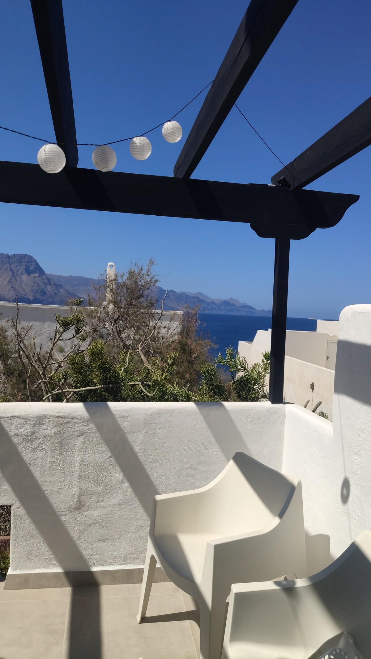 Un precioso apartamento de diseño, recientemente renovado con con impresionantes vistas de atardecer sobre el Océano desde su terraza. Primera línea al mar. Después de un largo día en la naturaleza, descansa en la cama King size (180x200cm) ----- A lovely apartment recently renovated with stunning views of the sunset, first line over the ocean from the terrace. Relax while reading, eating, or doing yoga. After a long day in nature, rest on the King size bed (180x200cm)