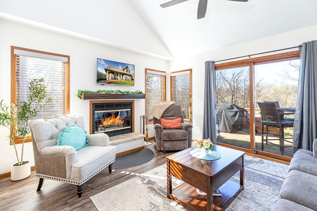 ⭐King bed with plush bedding in a peaceful, private setting ⭐Wood-burning fireplace — perfect for cozy evenings together ⭐2-minute drive to the North Golf Course, driving range, & Stonedrift Spa ⭐Wooded nature views & tranquil surroundings for a relaxing escape ⭐Just 12 minutes to downtown Galena — excellent shopping, dining, & sight-seeing ⭐Access to Owner’s Club amenities including indoor pool & fitness center ⭐15 miles to Chestnut Mountain Skiing ⭐2 Full bathrooms & newer full size sofa bed