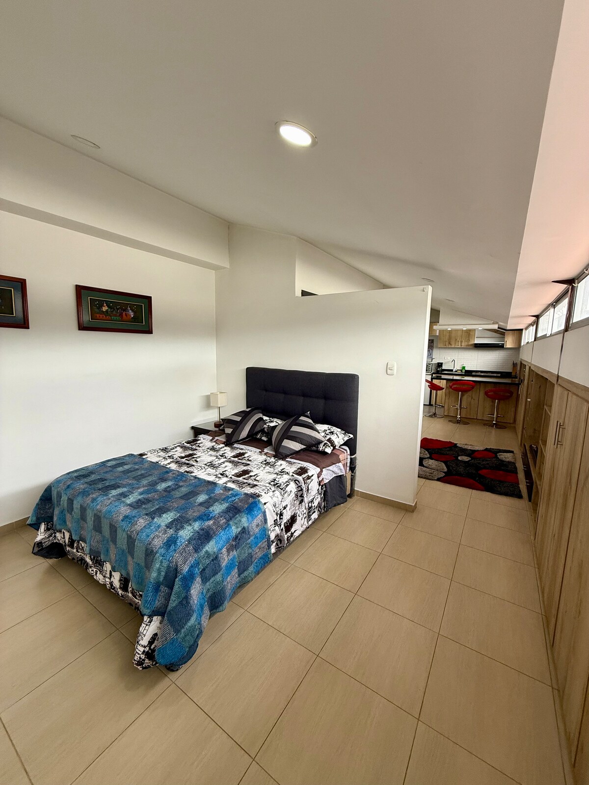 Studio apartment with a design inspired by the Galeras volcano. Located in the Centenario neighborhood, on the banks of the Pasto River, just one block from the Rosero Museum. A 15-minute walk to "Plaza del Carnaval" We have a plenty of books, and board games so you can connect with your roommates. The apartment is on the 12th floor of a building with an elevator. We've included a schedule of cultural activities in the city.