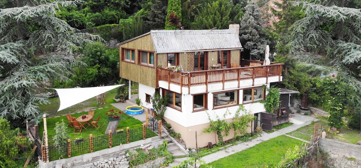 Szentendre şəhərindəki Hillin üstündəki bu unikal və rahat yaşayış yerində dincəlin. Panoramadan və təmiz havadan zövq alın. Pilis dağlarında gəzintiyə çıxın, Szentendre və ya hətta Budapeşti araşdırın. Szentendre-nin mərkəzi avtomobillə 10 dəqiqə, Budapeşt isə cəmi 20 dəqiqədir. Taxta kabinədə hər iki səviyyədə həm soyutma, həm də isitmə üçün kondisioner var və ideal temperaturunuzu təmin edir. Ev ictimai nəqliyyatla əlçatandır, lakin çoxlu baqaj daşımaq çətin ola bilər.