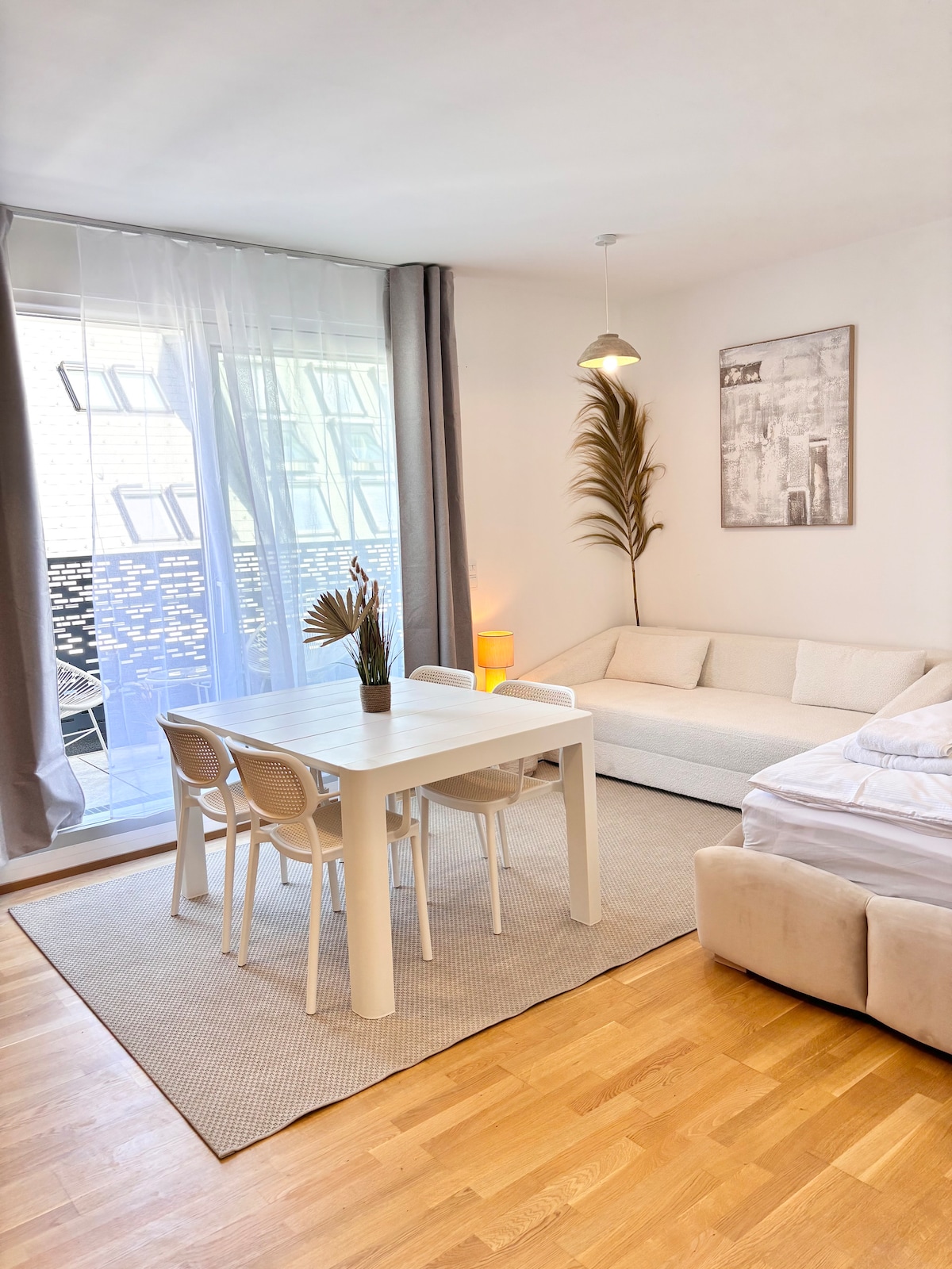 Ayrıca balkonu və heyrətamiz üfüqi mənzərəsi olan yüksək səviyyəli mənzilimizdə dəbdəbəli yaşayışı təcrübədən keçirin! Yüksək keyfiyyətli səs sistemi və gözəl mebel olan Netflix ilə ağıllı televizordan zövq alın. Yayda (mövsümün başlanması və bitməsi havadan asılıdır) ixtiyarınızda hovuz, 2025-ci ilin may ayından etibarən isə idman zalı da var. Binadakı supermarket ən yüksək rahatlığı təmin edir. Həmçinin pulsuz ortaq iş məkanlarından və paylaşılan terrasdan yararlanın. Köhnə Dunay çayı yaxınlığında dəbli qonaqlama üçün mükəmməldir.