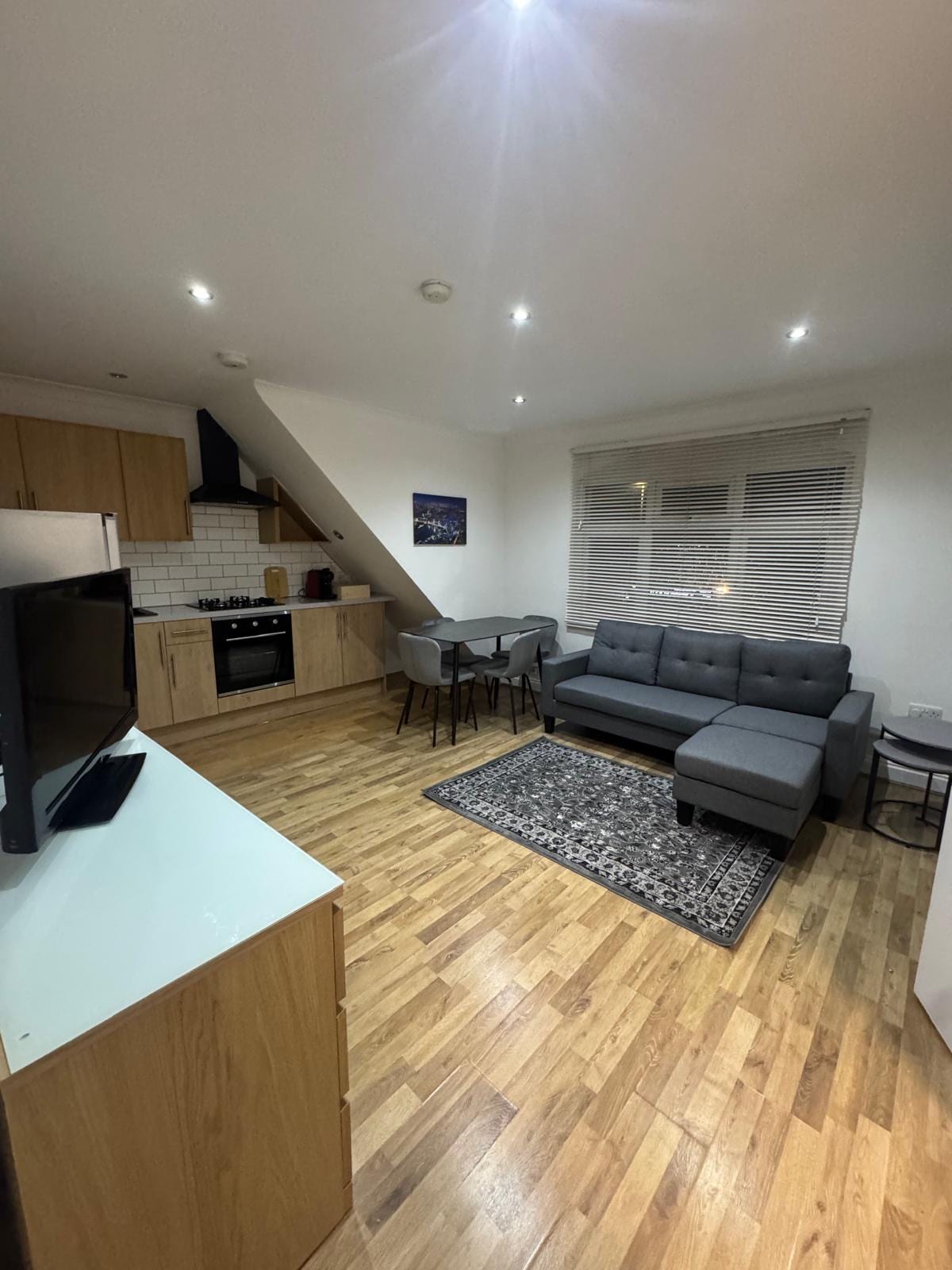 Qants Hill Mərkəzi Xətt stansiyasından cəmi 2 dəqiqəlik piyada məsafədə rahat və müasir 1 yataq otaqlı mənzil. 2-ci mərtəbədə yerləşən mənzildə rahat 180-220 sm ölçülü çarpayı, televizor, ayrıca eyvan və təmiz, qonaqpərvər yaşayış sahəsi var. Tam təchiz olunmuş mətbəx, müasir hamam və qəhvə maşınından zövq alın. Rahatlıq, təmizlik və Mərkəzi Londona əla nəqliyyat bağlantıları axtaran cütlüklər, tək səyahətçilər və ya işgüzar qonaqlar üçün idealdır. Stratford - 15 dəqiqə Liverpul küçəsi - 30 dəq
