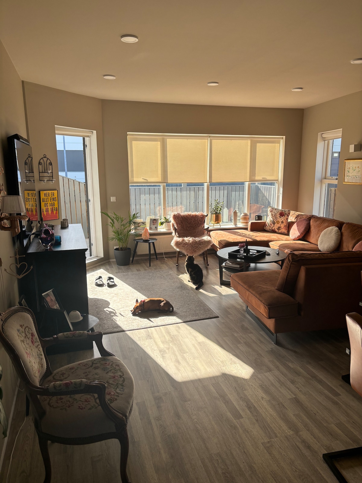 Kópavogurda sakit bir məhəllədə gözəl mənzərəsi olan rahat və işıqlı mənzil. Mənzil dörd nəfərlikdir, bir yataq otağı (160x200 sm çarpayı) və qonaq otağında divan-çarpayı (140x200 sm) var. Tam təchiz olunmuş mətbəx, paltaryuyan maşın və parkinq. Avtobus dayanacağı 3 dəq məsafədə yerləşir. İki ərzaq mağazası, hovuz və əla açıq hava sahəsi bir az aralıda yerləşir. Təqribi hərəkət məsafəsi: Reykyavik Şəhər Mərkəzi 15 dəq Keflavik hava limanı 40 dəq Mavi Laqun 40 dəq Qeyser 1h30min Gullfoss 1h 40 dəq