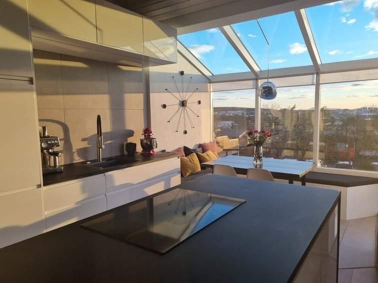 Paytaxt ərazisi olan Reykyavik və ətraf qəsəbələri gəzə biləcəyiniz ən yaxşı mənzərəsi olan təpənin üstündə yerləşən 135 kvadrat metrlik geniş mənzil. Kópavogur şəhərində, şəhərin mərkəzinə cəmi 15 dəqiqəlik məsafədə yerləşir. Mənzilin mənzərəli cakuzisi və ərazidə gözəl təbiəti var. İki böyük yataq otağı, paltaryuyan otaq, dart lövhəsi olan saxlama otağı var. Bütün lazımi cihazı olan böyük mətbəx və 86 düymlük televizoru olan böyük qonaq otağı. Qeydiyyat nömrəsi: HG-00019551