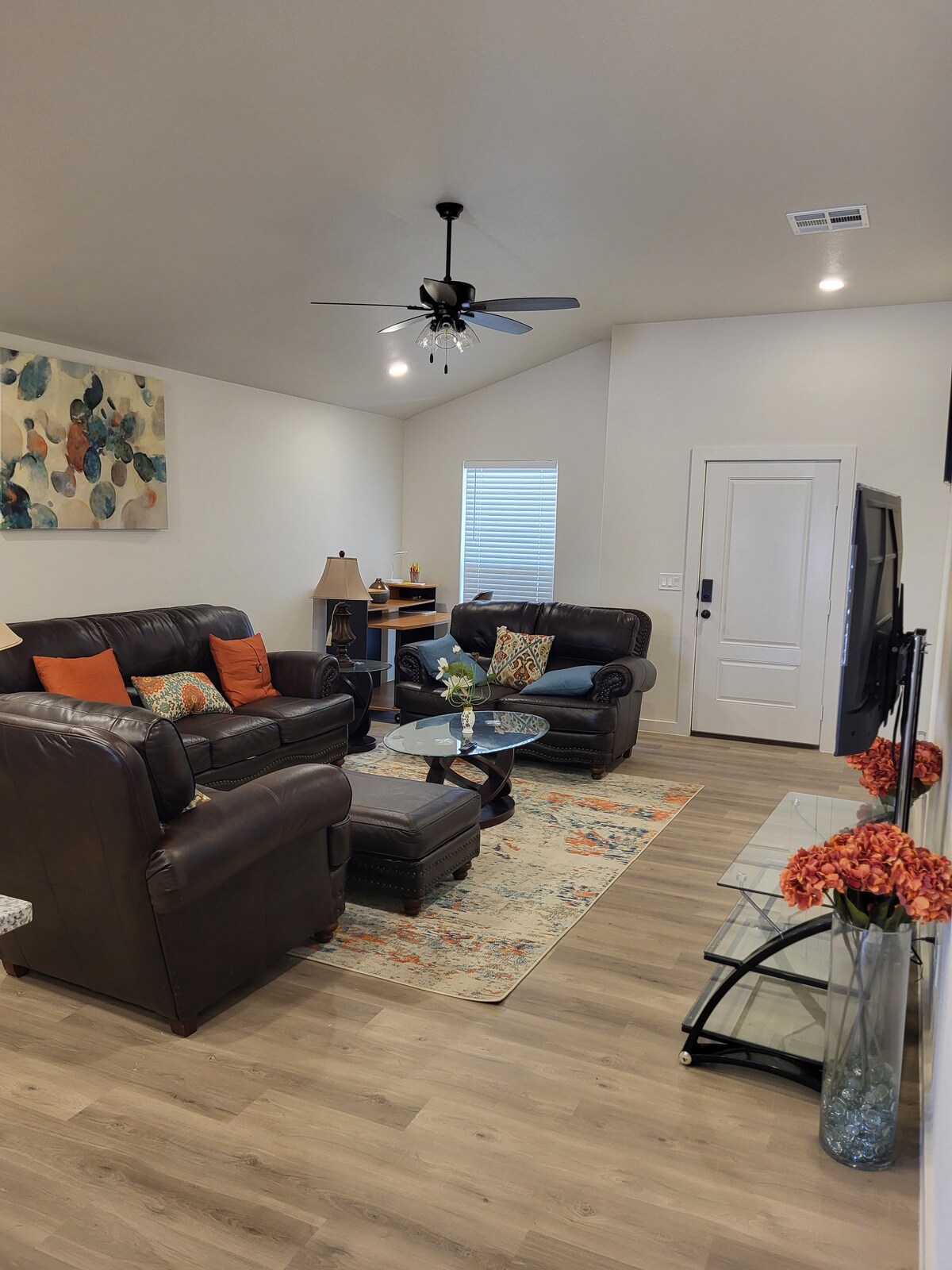 This unique place has a style of its own. The home is brand new and has 3 tastefully furnished rooms that can accommodate 2 persons each. A 7th person can also comfortably sleep in the living room. The home has a 75” TV in the living room and a 65” in the master bathroom. Other amenities available include a laundry and dryer, a grill, dishwasher, cooktops, coffee maker, microwave, hair dryer and other home appliances to make your stay as comfortable as possible.