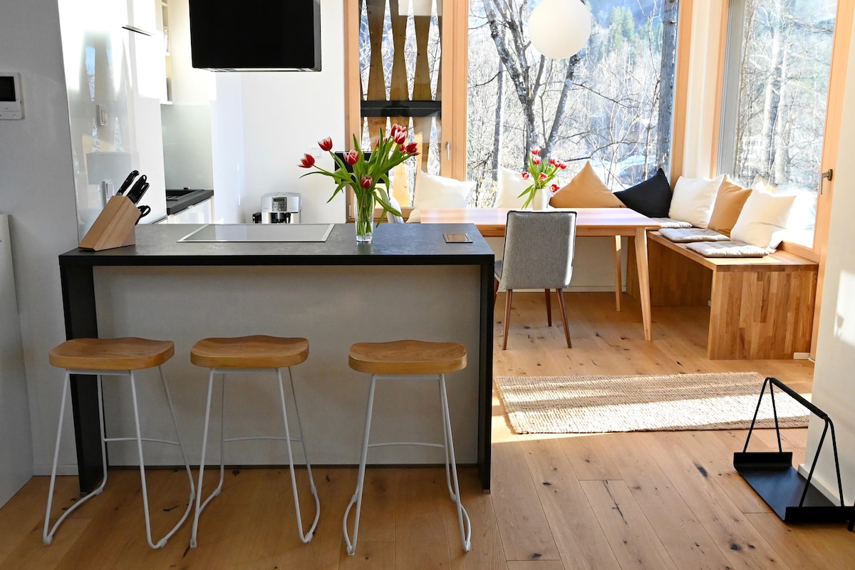 Gözəlliyə xoş gəlmisiniz... BAVARİYA Mərkəzi vağzala, xizək yamaclarına, yürüyüş yollarına və piyada zonasına bir neçə dəqiqəlik məsafədə yerləşən dağ mənzərəli Günəşli Bavariya üslubunda studiya mənzili. Fərdi mebel ilə dizayn edilib. Bio məhsulları, LED işıqları və təkrar emaldan istifadə edərək ekoloji təmiz ev. * Digər üç Apts-ımız var *Körpələr və ya uşaqlar üçün uyğun deyil *20 dekabr-07Yan minimum 7 gecə *Turist Vergisi daxil deyil