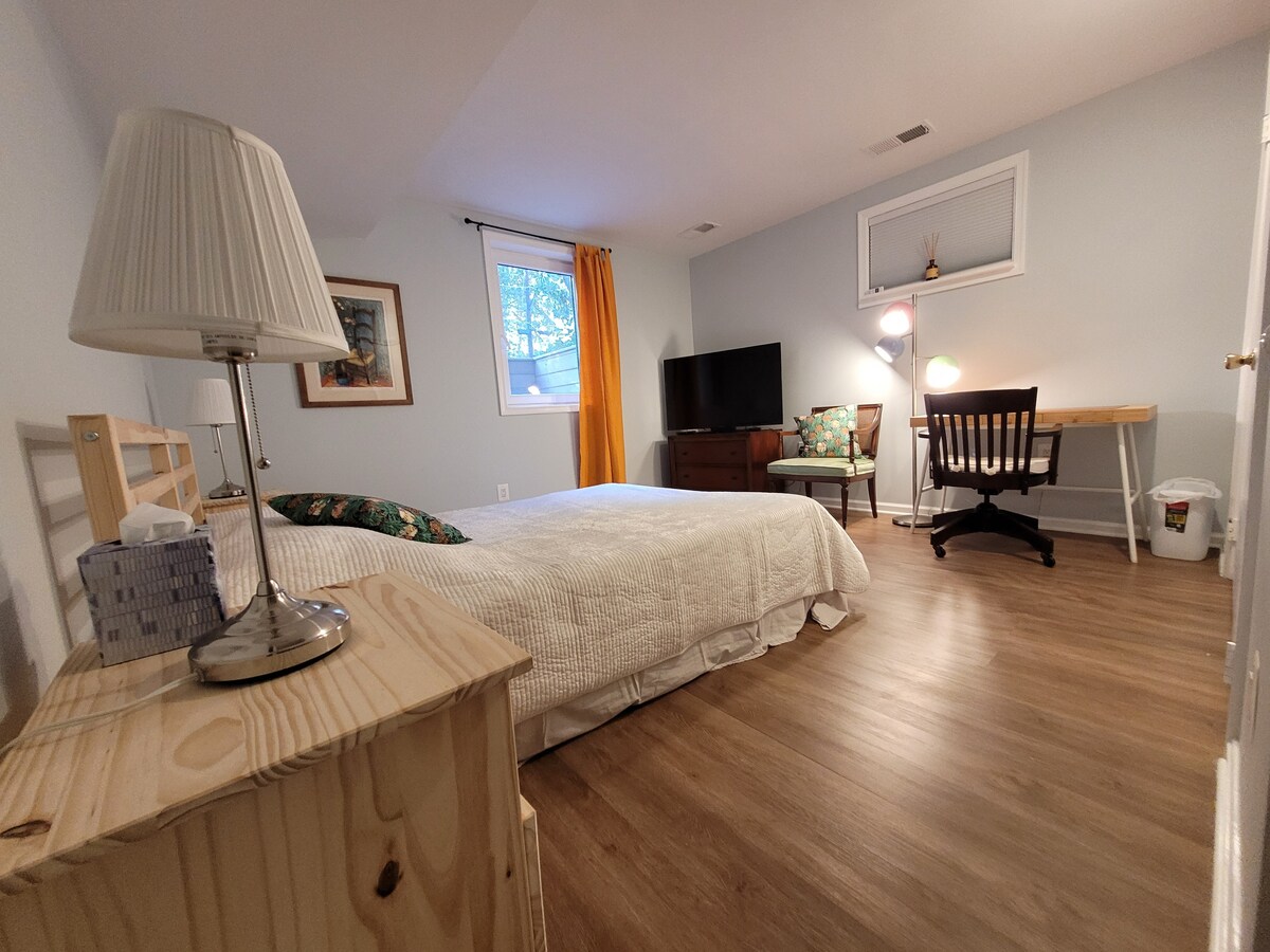 Welcome to your squeaky-clean stay! Enjoy a cozy, private space with a fully equipped kitchen and a clean bathroom with shower, all for your exclusive use. You only share one wall with the main house, offering comfort and privacy. This corner house allows easy parking and smooth coming in and out, in a peaceful neighborhood with plenty of restaurants, parks, and nearby metro/train stations. Note: The jacuzzi shown in photos is a shower only and is not a working jacuzzi.
