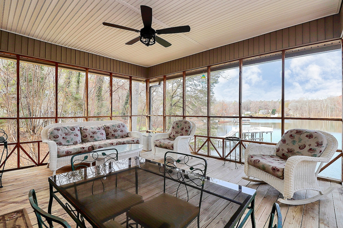 8 minutes from the CLT airport and 12 minutes from Uptown Charlotte this beautiful 3 story home is nestled inside a gorgeous lake front community. Hand scrape hard woods, chic decor, granite countertops, fully stocked kitchen, 6 bedrooms, a kids loft, 4 full bathrooms, a fire pit and landscape stone deck this home has it all. Garage access, parking is limited. The pool is closed for the fall/winter season. Reopens May 2022