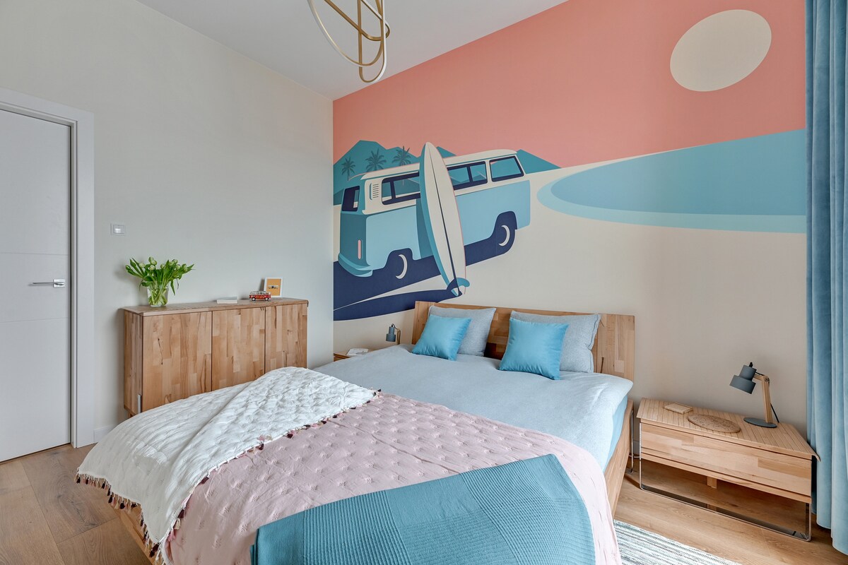 Ayrıca vannası, eyvanı və dəbli interyerləri ilə cütlüklər və ya uşaqlı ailələr üçün mükəmməldir! Bu mənzildə bir yataq otağı və qonaq otağında divan-çarpayı var. Burada 4 nəfərə qədər qonaq rahat yata bilər. Ərazidəki imkanlara idman zalı, sauna, dam terrası və oyun meydançası daxildir. Qdanskın Köhnə Şəhəri və Motlava çayının yaxınlığında yerləşir. Romantik və ya ailəvi qonaqlama üçün idealdır.