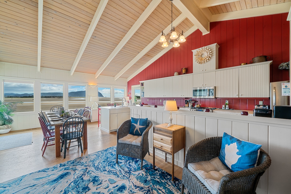 Ocean Breeze is a magnificent home nestled in the quaint and quiet neighborhood of Gearhart. Our home overlooks the Necanuim River and boasts amazing views of the River, the North Pacific Ocean, Tillamook Head Mountains, and the City of Seaside through the wall to wall windows and has direct access to the shores of the estuary. Ocean Breeze is a perfect getaway for fun, rest, relaxation, doing activities, and gathering with loved ones. 1 mile from Locals favorite McMenamins Restaurant & Pub