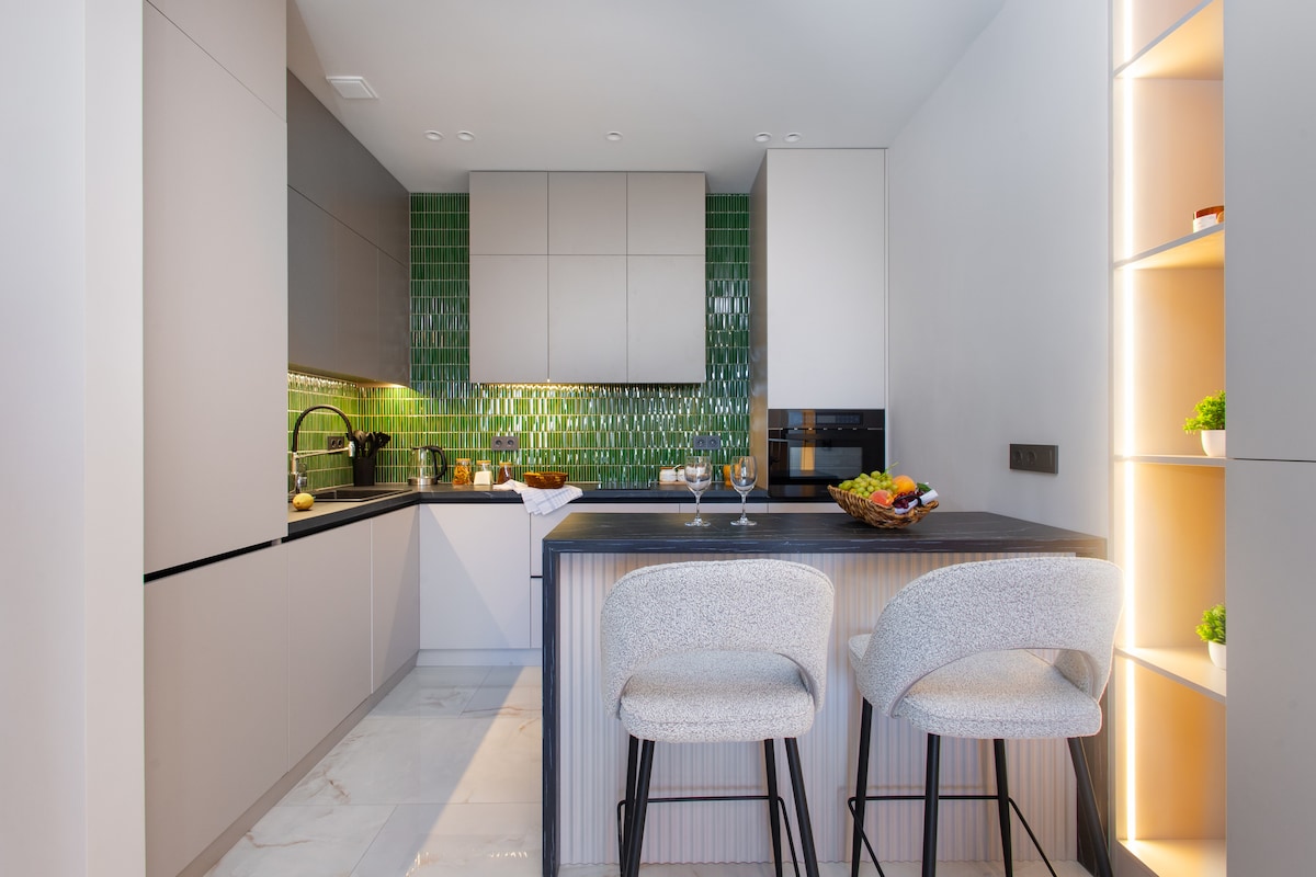 ☆ Welcome to “Skyview” by Hotelise: Touch the sky from our brand-new home. ✓ 24/7 Self Check-In ✓ 16/15 Top Floor ✓ 58sqm 🔥 Balcony with Views to die for ✓ Comfortable bedroom (bed 160x200 ) ✓ Brand New Designer-Made Apartment ✓ Brand New Building ✓ AC in the Living Room ✓ Washer | Dishwasher ✓ Fully Equipped Kitchen | Microwave+Oven ✓ High-Speed WiFi ✓ Luxury Toiletries, Fresh Linens 🔥 Sister unit “Skyline” next door (group stays) ♥ Hotelise: creating memories, one stay at a time!