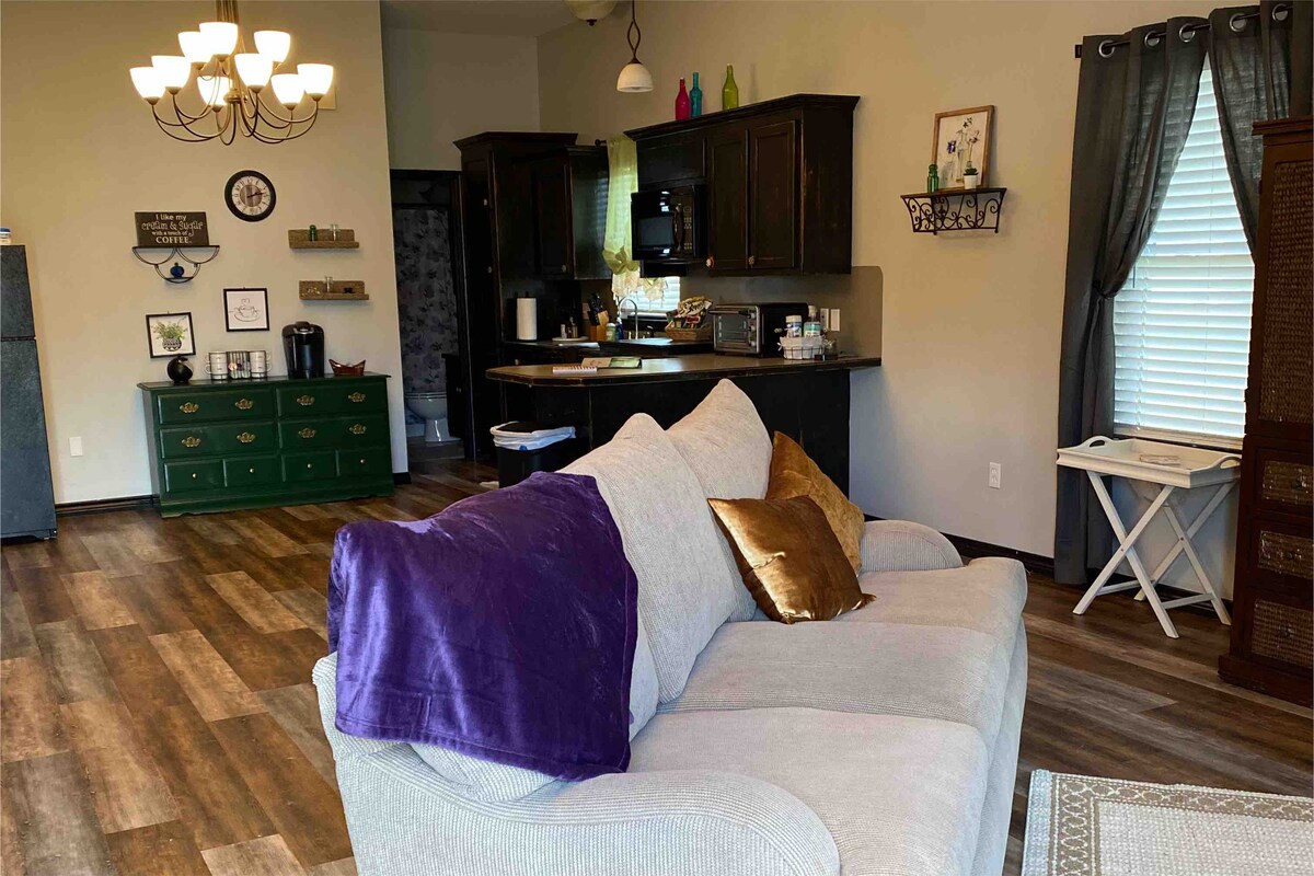 Perfect Bungalow for the couple looking to get away and enjoy some peace, visit family or enjoy one of the many sports and attractions that south Louisiana has to offer. Newly remodeled decor, comfy bed, kitchen with fridge, toaster oven and microwave. Complimentary coffee bar with snacks. Attractions: 19 miles to Tiger Stadium 20 miles to Baton Rouge River Center 54 miles to Superdome 60 miles to New Orleans 5 Miles to interstate 10 via Hwy 621 5 miles to Lamar Dixon expo center