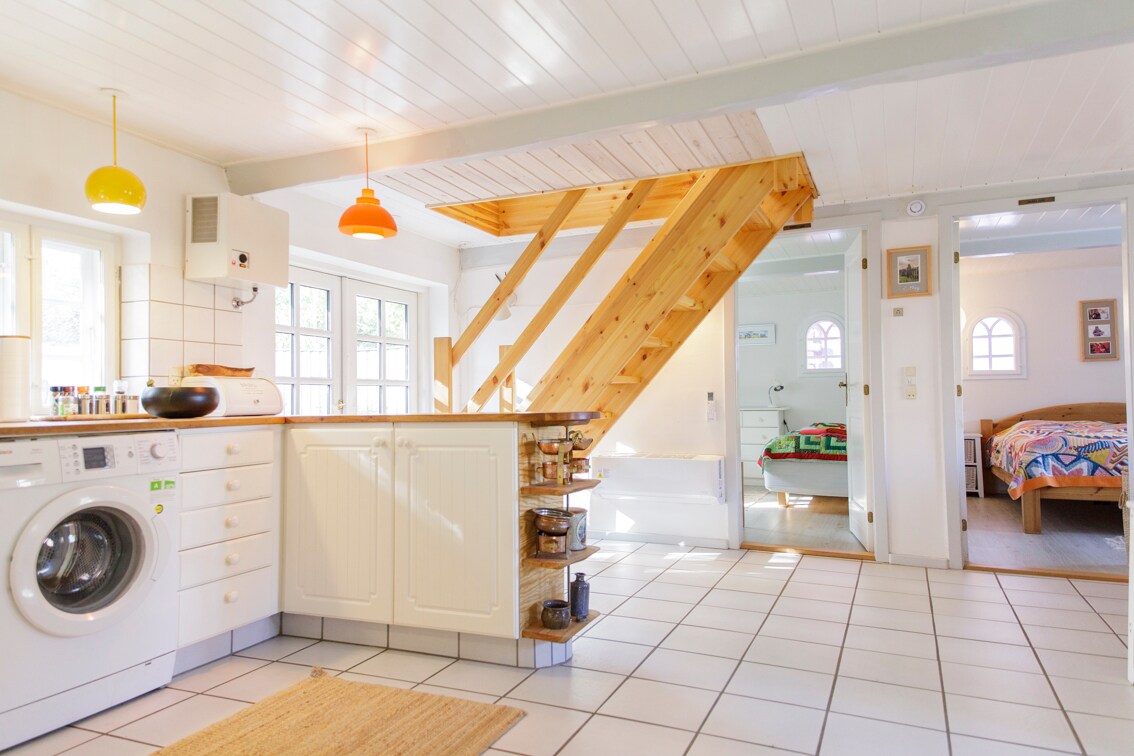 ENJOY SIMPLE LIVING BY THE SEA: (Please note: The rent is cheap and no cleaning fee is charged, so please clean on your departure and bring your own linens, sheets and towels). 22 m2 + Covered panoramic terrace. Views of Ses, Sydals and to Ærø and Germany. Living room with double sofa bed (200*125cm) Alcove with double bed (200*135cm.) Garden with lawn, sea view and garden table. Backyard with lawn. The house is a little low ceilinged in the kitchen.