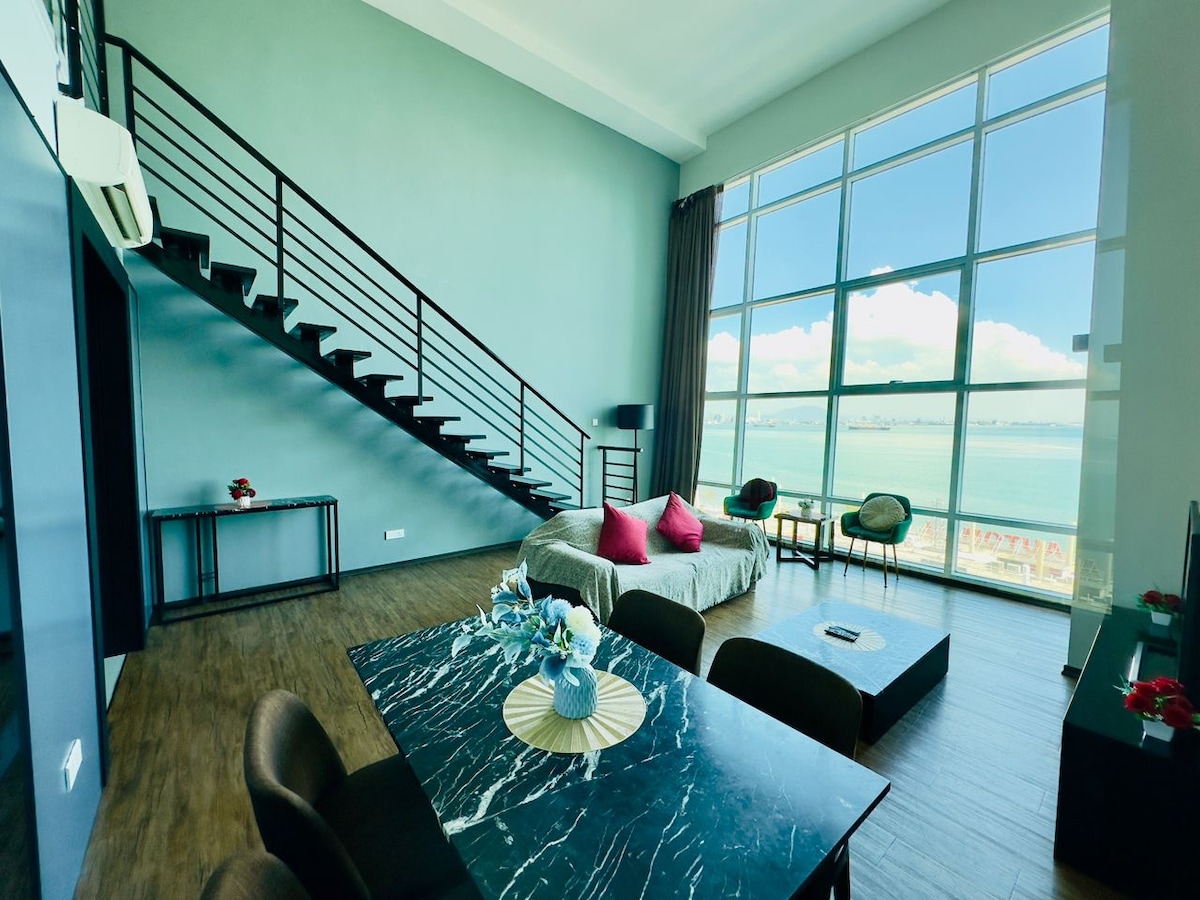 Amazing 2BR Seaview Duplex @ Maritime, George Town. This high-floor duplex offers panoramic ocean views from every angle, a bright double-height living space, and two comfortable bedrooms perfect for families, couples, and small groups. Located at Kapar Singh Drive, one of Penang’s best waterfront spots, you’re just steps from cafés, restaurants, nightlife, and beautiful seaside walks. Quick access to George Town attractions makes this the ideal stay for both leisure and business travelers.