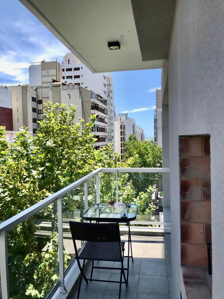 Departamento espacioso de ambiente y medio con cocina equipada y baño privado. Ubicado a dos cuadras del mar y en el centro de la ciudad. Muy luminoso y agradable, tiene vista abierta y al mar. El edificio es nuevo, cuenta con pileta semi-olímpica( no climatizada), gimnasio, sala de juegos y lavandería. Se puede conseguir estacionamiento dentro del edificio, con previa anticipación con costo adicional. Se abona al momento del check in.