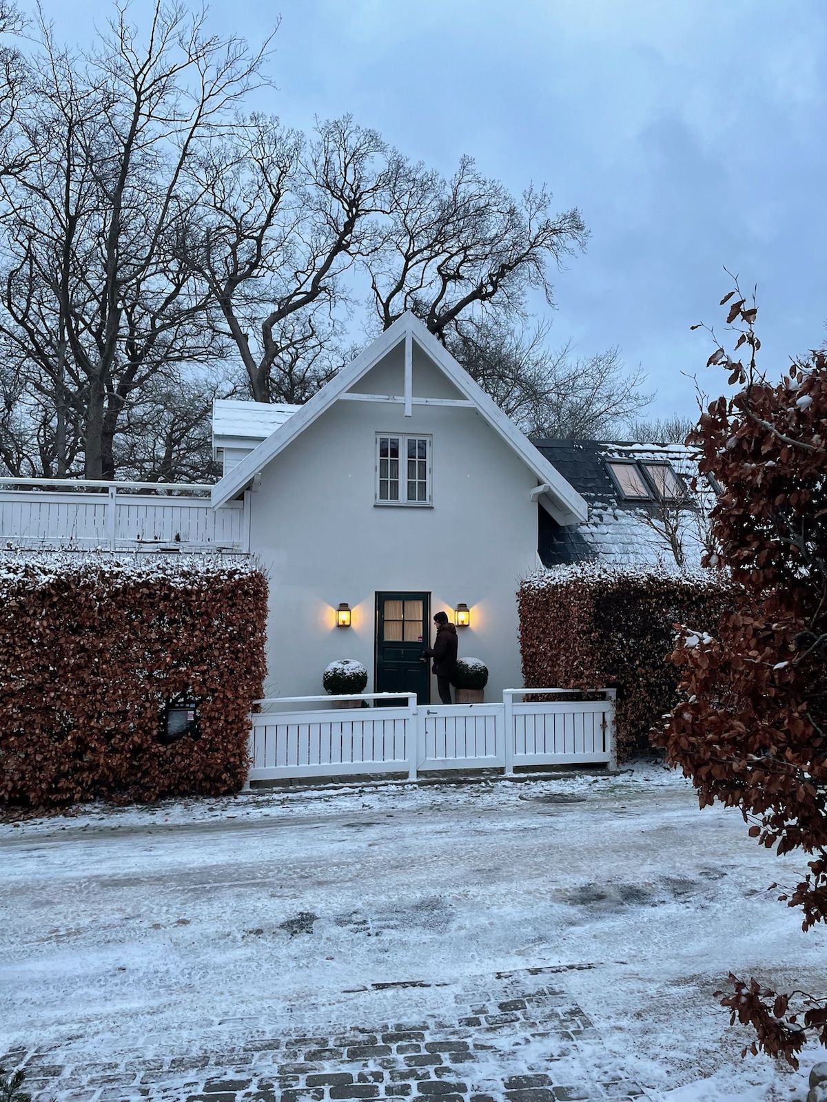 Böyük villa, böyük hovuz, meşə, çimərlik və Kopenhagen