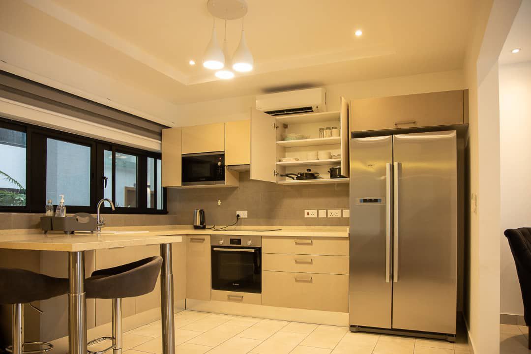 This unique place has a style all its own. A centrally located Modern Loft, well appointed with amenities that will make you feel right at home. Conveniently situated in East Airport Accra. The loft comes fully furnished with Air conditioning, New appliances, Wifi, Washer and a backup Generator will make your stay comfortable.