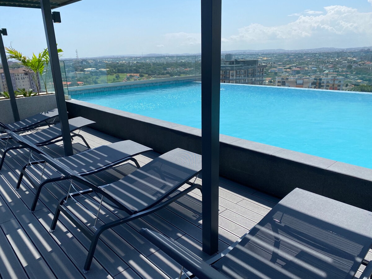 Keep it simple at this recently refurbished,sparkling clean and centrally-located place only 4mins away from Kotoka International Airport (KIA). The studio comes with: - Free & Fast Wifi (> 60Mbps) - Smart TV with Netflix & DSTV - A large comfy bed; fits 2 adults. - Exclusive access to rooftop pool -In-unit washer/Dryer - Free parking - Onsite Gym & Cafeteria - Private balcony with garden view - 24 hours security and CCTV - Personalized fingerprint security access to The Lennox development.