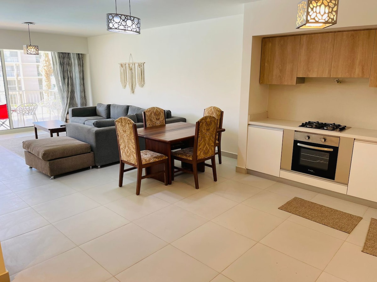 Stay in a luxury suite inside The Address Beach Hotel, Marassi – located in a secure gated Community . This elegant 1-bedroom unit offers panoramic sea views and marina view, a private balcony, a cozy living area, and a fully equipped kitchen. Guests enjoy full hotel amenities. Beach access is available through the hotel reception at EGP 7,000 per person per day, paid directly at reception. Enjoy 5-star services and 24/7 security.