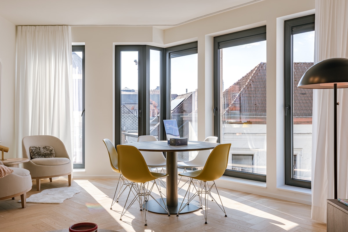 Live the "Parisian allure" of Ghent in this exquisite 1864 heritage apartment on the prestigious Ajuinlei. At 75m², this boutique retreat is designed for those who love history, style, and being in the heart of the action. Front-Row Views: A private terrace directly overlooking the Lys canal—the ultimate spot to soak in the city’s vibrant energy. Private Wellness: Large ensuite Jacuzzi for two. The Center: Steps from the Opera (150m) and Graslei (310m), with top dining at your doorstep.