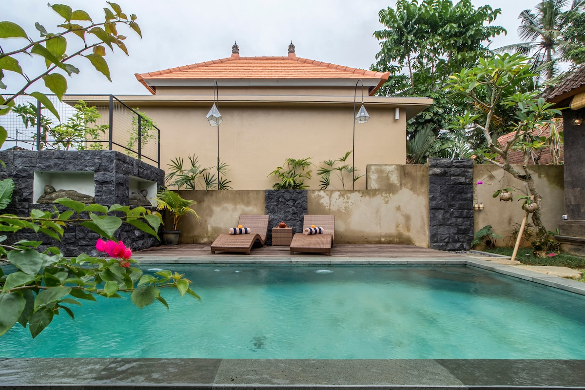 Bu lüks əmlak ubudun şimalında ubud mərkəzindən 10 dəqiqə, butiklər, yoqa, kafelər, restoranlar,yoqa studiyaları və bir çox canlı yerli görməli yerləri olan Ubud cretya tərəfindən 15 dəqiqə məsafədə yerləşir. Pulsuz səhər yeməyi qonaqlama müddətində cəmi 1 dəfə, minimum masainap 2 gündür. Lakin tam təchiz olunmuş mətbəximizdən istifadə edə və öz mətbəxinizi hazırlaya bilərsiniz bu Ubud dünya səviyyəli restoran kimi təklif edə bilər və daha böyük mədəniyyət sizə Balidə ən yaxşı qonaqlamanı təmin edə bilər.