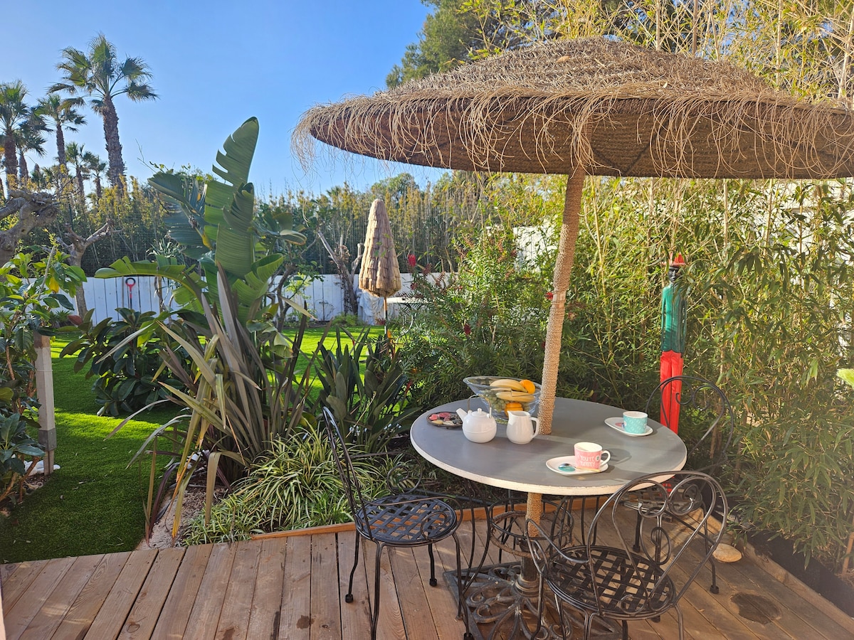 Padın Presqu 'île of Giens-də, Badine və Almanarre çimərliklərindən 500 m məsafədə yeni, rahat və işıqlı kondisionerli mənzil. Bir az dik pilləkəni olan birinci mərtəbədə gözəl yataq otağı, duş otağı və ayrıca tualet, işıqlı qonaq otağına açıq mətbəx və günəşdən zövq almaq üçün terras var. Dəniz kənarında rahat və təbiət qoynunda qalmaq üçün rahatlıq, dizayn və rahatlıq arasında harmoniya. Əmlakda 🚗 pulsuz parkinq.