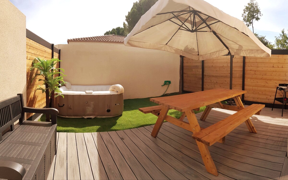 Gignacın mərkəzində isti kənd evi. 8 nəfərə qədər qonaq qəbul edən bu mehriban yaşayış məkanı gözəl xatirələri paylaşmağınıza imkan verəcək. Yerləşdiyi yer: A750-dən -5 dəq (2 giriş mümkündür). Monpelyedən -15 dəq Səhra Sent Guilhemdən -15 dəq Salaqoudan -30 dəq Gəzinti məsafəsi: Çörək zavodları, restoranlar, temalı barlar, banklar, tütün, bərbərxana və institut və s... Hər şənbə günü sənətkarlıq bazarı. Avtomobillə (5dəq): Intermarché, restoranlar, boulinq və s. olan Kosmo zonası