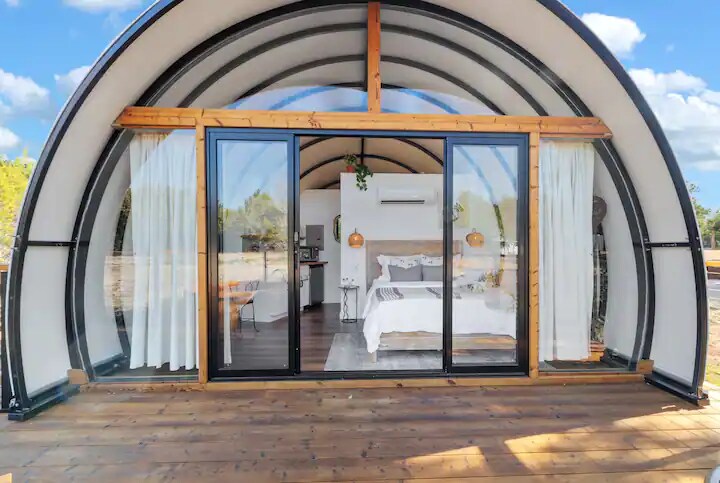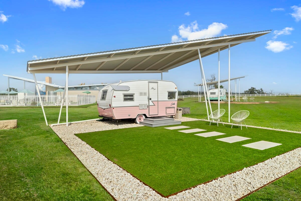 Qlempinq həvəskarları və bütün vintaj dekorasiyası həvəskarları 1961-ci ildə Palm Springs ruhlu Blue Skies Retro Resort-un bir hissəsi olan Miss Abby-də özlərini evlərindəki kimi hiss edəcəklər. Günlərinizi açıq hovuzda rahat keçirin və mavi Texas səmasının altındakı ayrıca, ayrıca hamam otağı süitanıza, təmin edilmiş sobaya və açıq havada duşa girişdən zövq alın. Hər günün sonunda paylaşılan açıq hava buxarı və pavilyonun istiliyi ilə dincələ və dincələ bilərsiniz.