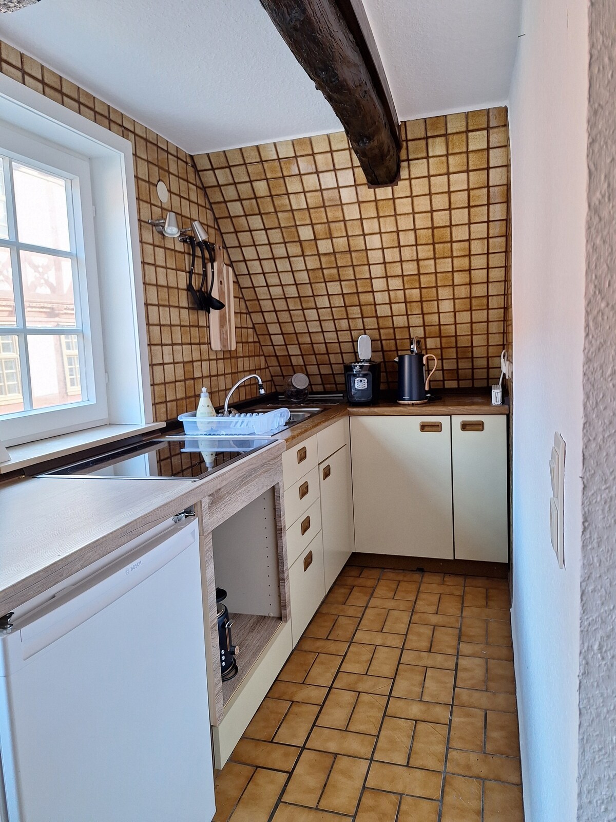Vogelsberg-i velosipedlə kəşf etmək, ən gözəl yarımtəkən şəhərləri ziyarət etmək, Vogelsberg-dəki təbiətdən zövq almaq və ya ərazidə bir günlük işdən sonra istirahət etmək - burada mümkündür. Yeni təmir olunub və çox yaxşı təchiz olunub. Mətbəx şkafları + soyuducu doldurulur, şəkillərə baxın. Mütləq alış-verişə getməyə ehtiyac yoxdur. "Sərfiyyat" ın öz istəyinizlə doldurulması, "minibar şərtləri" yoxdur. Miele paltaryuyan maşını bir yolda kiçik camaşırxana (3kg) edir