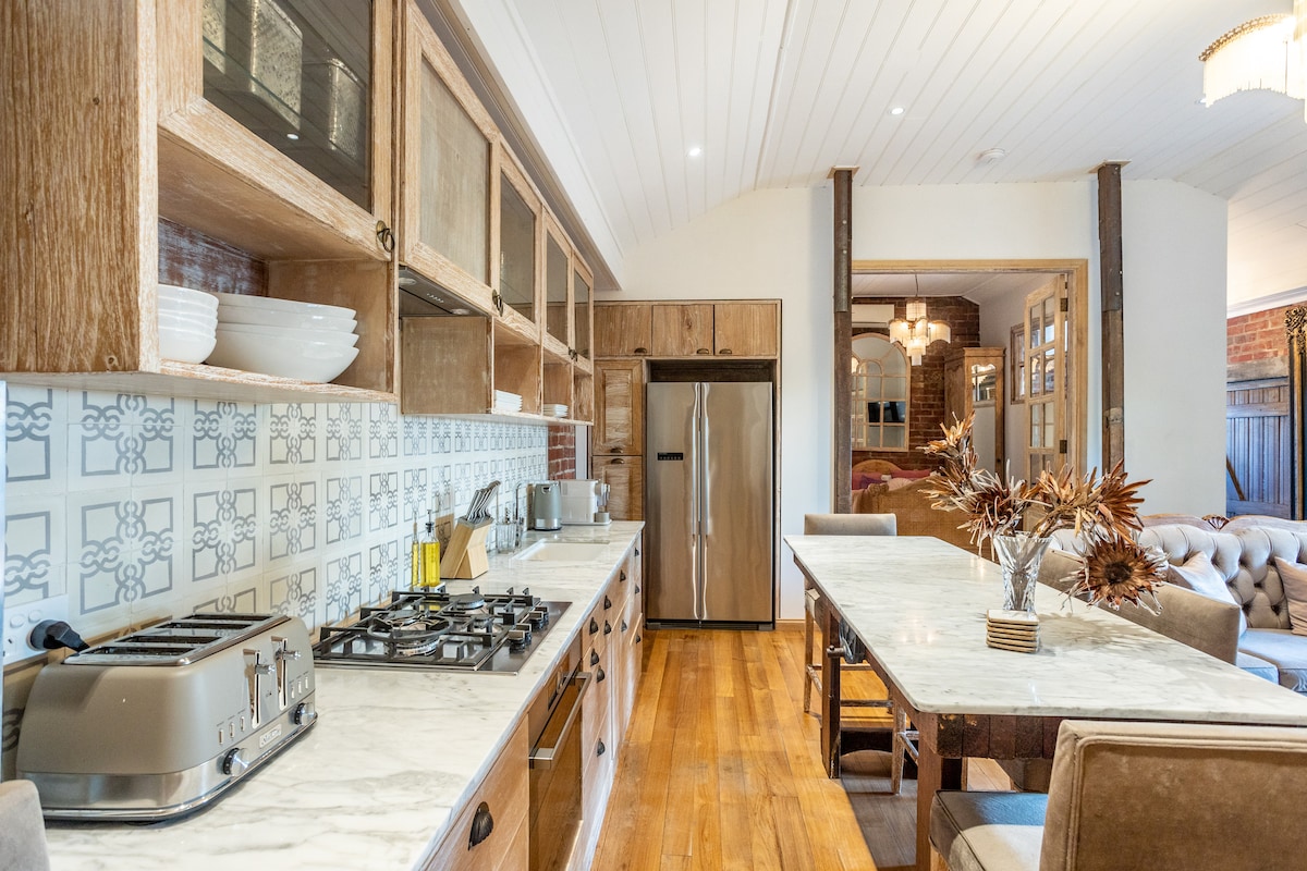 Nestled in the lush heart of Gippsland, this restored bluestone barn offers a tranquil riverside retreat. Just 2.5hrs from Melbourne, the property is an idyllic blend of rustic charm and modern comfort. Brought back to life, featuring soaring ceilings, exposed stone and timber beams. Plush furnishings and curated details provide everything you need for a cozy escape. Stroll the fern lined trails, breathe in the mountain air, and unwind beneath star-drenched skies.