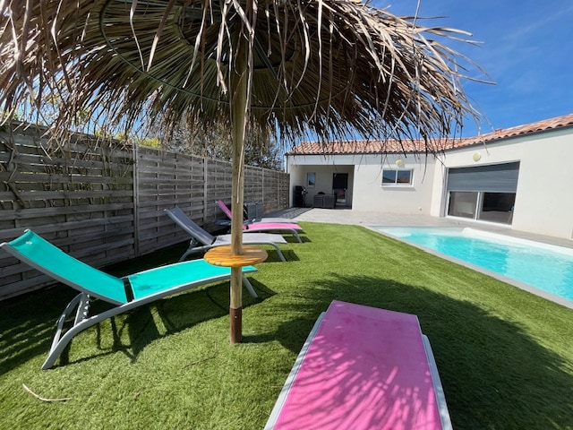 chez l'habitant, près des plages de saint Gilles Croix de Vie, mais au calme. Maison indépendante de 39 M2 avec terrasse donnant sur un jardin arboré et clôt. 1 chambre avec sdb attenante avec douche à l'italienne. 1 pièce à vivre ave canapé convertible, donnant accès à la terrasse et au jardin. Kitchenette avec minifour, micro onde, réfrigérateur, machine à café etc. Lave linge En saison, location du samedi au samedi.