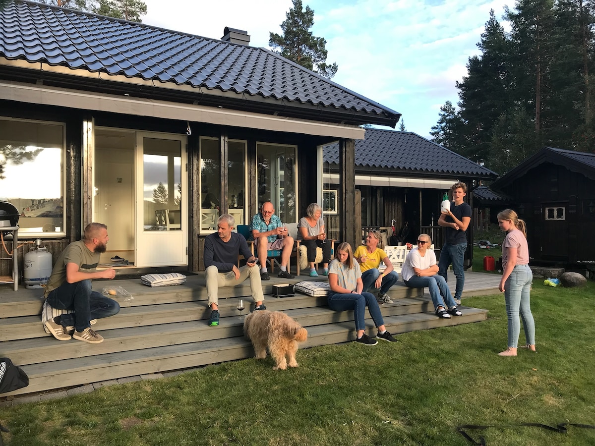 The holiday home has a nice terrace where you can enjoy long days out during your stay. You will get to experience farm life close up, with the sheeps as your nearest neighbour! In the spring it is time for lambing and small cute lambs see the light for the first time. On the farm you can also visit the rabbit garden and watch the rooster with his hens walking around in the yard. It is not far from the cottage to lakes were you can go swimming during summer. The hiking opportunities are many!