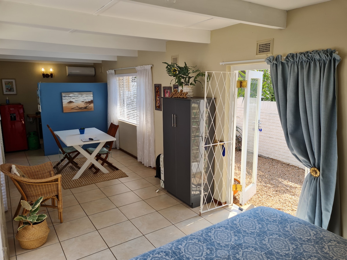 Compact, eclectic and unpretentious garden cottage in a tranquil and secluded setting.......2 kilometers away from the Indian Ocean. Private, safe and centrally located within walking distance of 7 choice restaurants. Retail stores, library and Medical Center within a 1 km radius. The shower is an experience!! Please note it's a kitchenette with a microwave, fridge, kettle and a sink. Also please read the check in and checkout times. 24 km from the Airport (19 min)