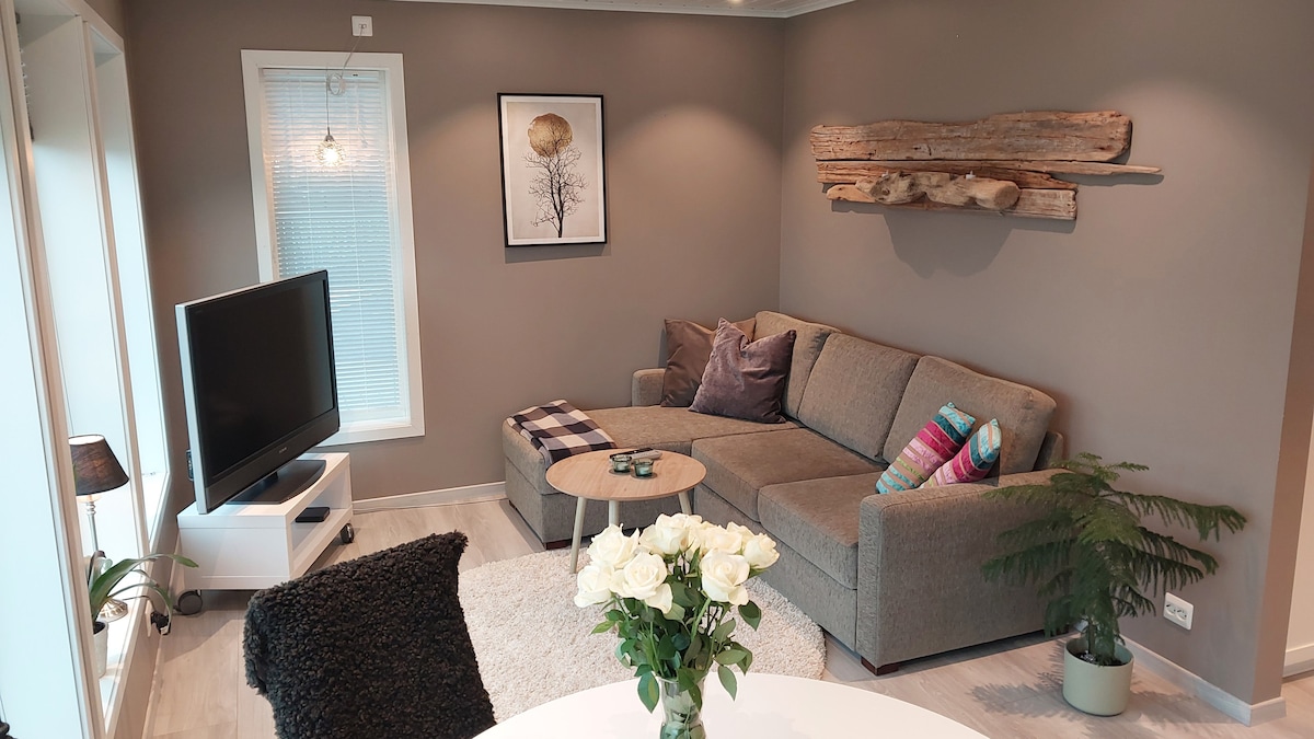 Nyt roen i denne moderne og stilrene leiligheten – med fjorden rett nedenfor og Sandane sentrum kun en kort spasertur unna. Leiligheten er nyrehabilitert og innredet i skandinavisk stil med hotellfølelse. To soverom, fullt utstyrt kjøkken, lekkert bad og en lun stue med fjordutsikt. Uteplass med møbler, gratis parkering og rask Wi-Fi. Perfekt for par, venner eller jobbreisende. Velkommen til Villa The Cliff!