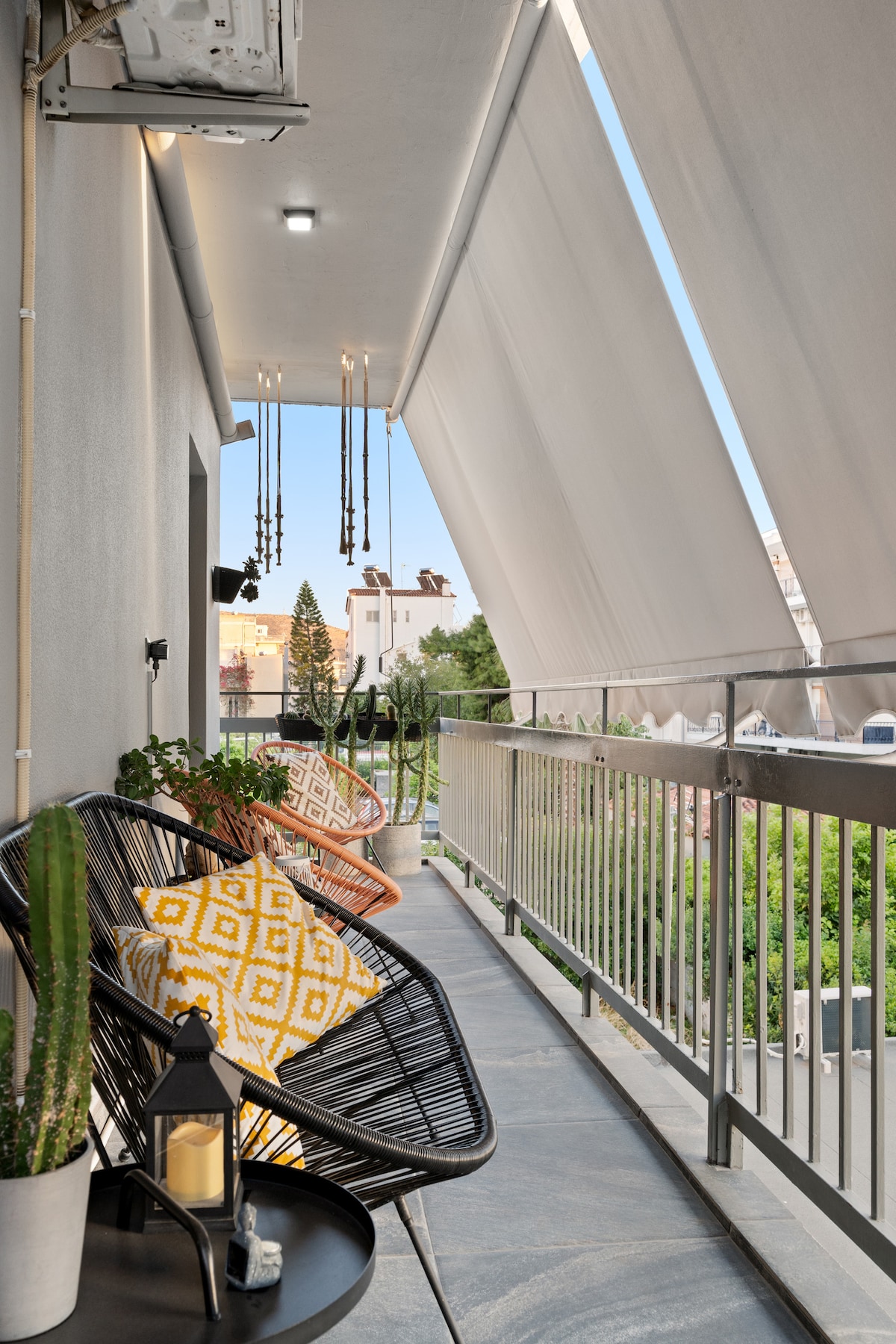 Müasir təmirli 60m2 5-ci mərtəbə talvar mənzili hava limanı xəttində Panormou metro stansiyasından cəmi 4 dəqiqəlik məsafədə, Afina kəşfiyyatı üçün ideal sakit "bazekamp" yerləşir! Diqqətlə dizayn edilmiş və bir memar kimi mənim tərəfimdən bəzədilmiş mənzil bir istək, iki ağıllı televizor (yataq və qonaq otağında) və sevimli buxarı küncü ilə tam təchiz olunub. Şəhərə və Ymitos dağına heyrətamiz panoramik mənzərəsi olan hər iki tərəfdən bitkiləri olan iki böyük eyvan.