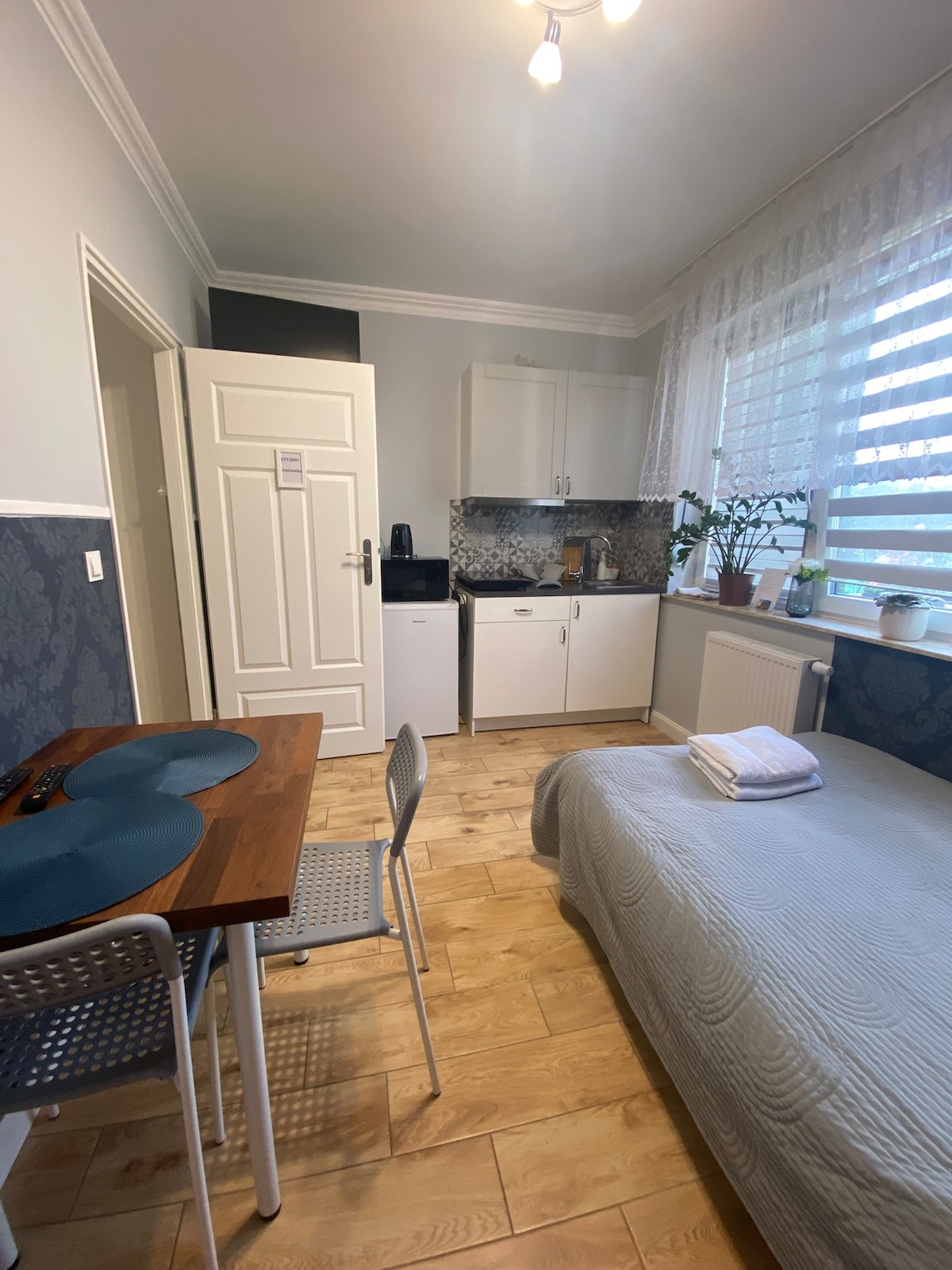 Öz park yeri olan yeni binada mənzil. Birinci mərtəbədə. Mənzilin sahəsi 45 kvadratmetrdir, mətbəxli otaq, ayrıca yataq otağı. Kirayəyə hazır, tam təchiz olunmuş mətbəx: induksiya plitəsi, soba, soyuducu, qabyuyan maşın, mikrodalğalı soba. İstədiyiniz yeməyi rahatlıqla bişirə bilərsiniz. Hamam otağında paltaryuyan maşın. Televizor, Wi-Fi Qonaqlar üçün yataq dəsti, yorğan, dəsmallar. Binanın yanında şəxsi parkinq Kondisioner. 100 m supermarket 5 dəqiqəlik məsafədə Legnica İqtisadi Zonası 10 dəqiqəlik məsafədə Leqnitsa 15 dəqiqəlik məsafədə Yavor 25 dəqiqəlik məsafədə Bielany Wrocław